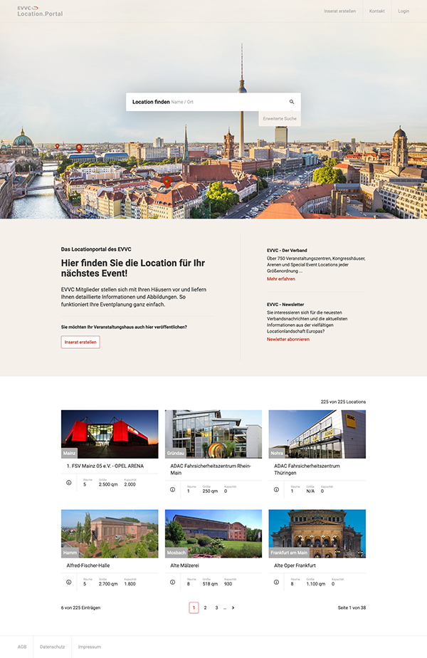 Als Portalbetreiber für den EVVC lässt die cekom das Portal mit einem übersichtlichen und modernen Layout in neuem Licht erstrahlen. Nach den Leitsätzen "Schneller finden was man sucht. Schneller finden wo man sucht.", bietet die neue Locationwebseite neben einem modernen Erscheinungsbild auch eine bessere Such und Filtermöglichkeit um den Nutzer zum gewünschten Ziel zu führen.