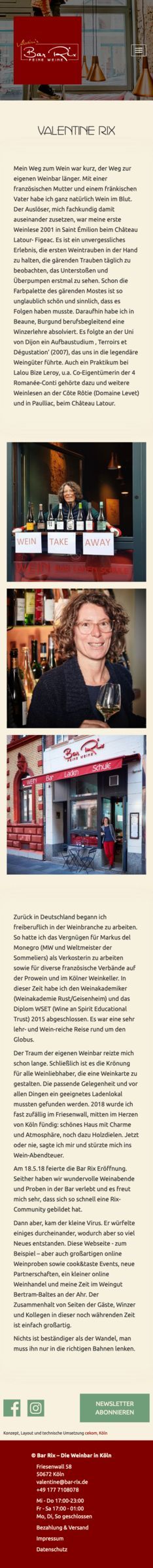 Feine Weine, Tastings und eine gemütliche Atmosphäre, das alles findet man in der Bar Rix in Köln. Damit Sie dieses Gefühl auch in Ihren Wohnzimmern erleben können, gab es für Valentine Mühlbergers Website eine rundum Erneuerung.